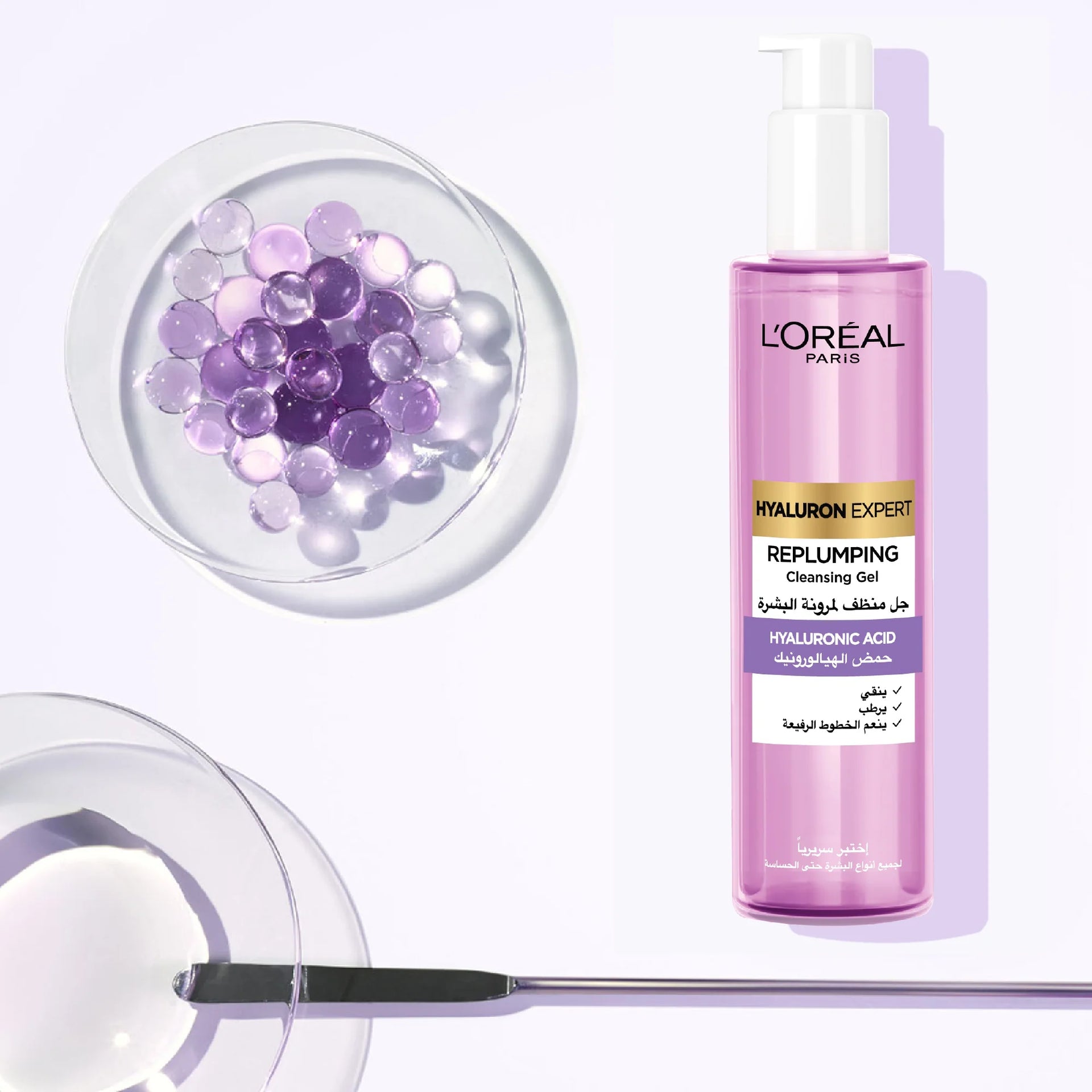 L’Oréal Paris Hyaluron Expert Replumping Cleansing Gel is a hydrating facial cleanser formulated with Hyaluronic Acid, a powerful dermatological active known for its ability to retain up to 1000 times its weight in water. This refreshing gel gently removes impurities, excess oil, and makeup while delivering intense hydration to the skin.