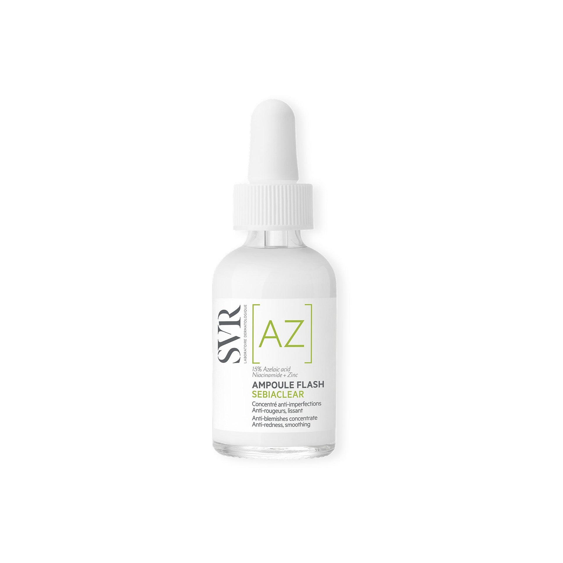 To obtain the best balance effectiveness / tolerance, the SVR Laboratory formulated this care with 15% of azelaic acid, dermatological active anti-inflammatory and keratolytic recognized. Combined with salicylic acid, zinc and niacinamide, SEBIACLEAR Ampoule flash deeply clears, visibly reduces imperfections and redness in record time. Its milky and light texture fuses with the skin for an imperceptible finish. The skin is cleansed, purified, soothed and comfortable.